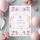 Diseñada con un toque de fantasía, esta invitación presenta ilustraciones encantadoras de hadas, flores brillantes y destellos mágicos, creando el ambiente perfecto para una celebración especial. Totalmente personalizable, puedes agregar el nombre de la cumpleañera, la fecha y los detalles del evento para que sea único y memorable.