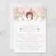 Una invitación simple y delicada para la Primera Comunión, el Bautismo o el Bautizo de su hija con flores de color rosadas y una cruz de color oro. Los detalles son fáciles de cambiar para adaptarlos a su evento.