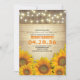 Convite de casamento russo com flores de girassol, textura de madeira de burlap e conjunto de luzes. Shabby e o convite para o casamento do Chic Country com girassóis amarelos e laranja brilhantes.