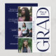 This modern graduation invitation features a bold and stylish layout with a navy blue and white color palette. The design showcases a large vertical “GRAD” typography element paired with a graduation cap icon and “Class of 2026” detail for a contemporary touch. A multi-photo collage highlights the graduate’s personality with candid and portrait images, while the opposite panel presents event details in a clean, organized format. Perfect for high school or college graduates, this invite blends elegance with a personal, photo-driven design—ideal for a memorable celebration announcement.