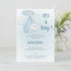 Sleeping bear cloud and stars blue boy baby shower invitation