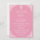 Convites Invitation Floral Cross Baptism Rose Pink