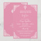 A rose pink invitation with a white floral cross and corner flourishes for baptism or christening. Personalise the details and change baptism to christening if preferred. Part of the Floral Cross Collection.