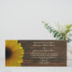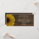 Um convite de casamento com um girassol amarelo sobredimensionado à esquerda sobre um fundo de madeira de galinha. Personalize com detalhes do seu casamento.