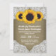 Invites de Sunflower Burlap e Lace Wedding - apresentam um campo impresso para burlap e renda rustica e fundo de renda com girassóis.
