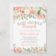Lindos convites para um chá de fraldas floral para uma garota. Design apresenta belos rosas pintados à mão com aquarelas, peônias e híbridos em tons ou cor-de-rosa pincel, pêssego, coral e creme.