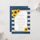 Convite de casamento em estilo russo com girassóis e listras azuis marinhos. Excelente para casamentos de celeiros de países de verão e outras festas do estilo vintage.