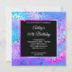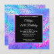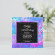 Crie seu próprio convite para celebrações de aniversário de na moda milestone para seu rico. A imagem gráfica digital de fundo decorativa apresenta uma brilhante luva-arco-íris ombre e uma fina folha azul-magenta de folha-leopardo. No centro da frente há uma praça preta com a coordenação de Miami ombre, a borda do filme de metal ombre, a sua informação de convite personalizada. Mova ou exclua o gráfico cintilante branco sujo. Personalize os estilos de fonte elegantes, cor e tamanho. A folha de alumínio moderna é criada com elementos de arte digital que impressão gostam de uma foto. Fabuloso convite de aniversário para seu melhor amigo. O gradiente de fundo contém cores como magenta, aqua, azul, roxo, violeta, rosa, rosa quente e amarelo.