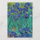 Este convite floral tem como fundo uma pintura de íris de Van Gogh (agora em domínio público). O texto está em um retângulo branco transparente. A ocasião "Casamento" e os nomes são escritos em uma caligrafia azul elegante, o resto em letras maiúsculas pequenas pretas.