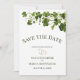Send out your Save the Date requests- Make sure your guests are available to attend your wedding - Irish Stylized Shamrock Leafy Foliage , delicate tendrils of shamrocks and clovers in shades of monochrome dusty earthy green. This is a simple botanical invitation, with modern rustic elegant appeal. Part of a wedding stationery collection with matching wedding accessories. ©WhimsicalArtwork™ created for the BarefootBride™