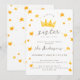 Estes simples e minimalistas convites para o chá de bebê são perfeitos para celebrar toda a família! Eles apresentam seu texto personalizado em uma tipografia moderna e um roteiro manuscrito de na moda para um título de precioso: irmãzinha no caminho! Você também pode mudar a palavra ‘irmã’ para uma ‘menina ou um 'príncipes para tornar esses convites universais. O design simples é decorado por uma coroa de aquarela fofa, de cor amarela ouro e padrão estelar perfeito para uma pequena princesa! Crie os seus próprios convites para bebês estrelados clicando no botão "Personalizar".