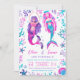 Este convite às irmãs de aniversário em comum de sereia de aquarela é ideal para uma festa de aniversário de irmãs gêmeas ou irmãs próximas da idade (você pode adicionar/ modificar a idade). Este convite inclui duas sereias pintadas à mão em aquarela com coral, conchas marítimas e estrelas-do-mar ao redor numa paleta cor rosa, turquesa e roxa. No verso do convite está um padrão de criaturas marinhas com muitos animais diferentes, incluindo águas-vivas, cavalos-do-mar, arraias-formigas e muito mais. Este convite é ideal para uma festa de aniversário de menina na praia, uma festa de piscina ou apenas uma festa de verão da sereia. Você pode personalizar todos os campos de texto para se adequar ao seu evento. Consulte a coleção de partes correspondentes.