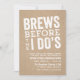 Breve antes do I Do's! Celebrar antes de um casamento - ou um janto de ensaio, festa de noivado ou solteiro/festa de solteira - com este legal convite temático à cervejaria. O fundo tem um efeito legal de papel kraft (por favor note - não é papel kraft real; apenas impresso para mimetizá-lo) com um tipo branco divertido. Personalize todos os detalhes da parte. A decoração da parte correspondente também está disponível.