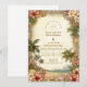 Celebrate your wedding day with timeless tropical elegance. This romantic design features lush hibiscus blooms, soft palm leaves, and painterly botanical details layered over a warm, vintage-inspired background. The refined typography and airy island palette create a sophisticated destination wedding feel that’s perfect for coastal venues, tropical resorts, or summer celebrations.