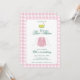 It’s a Par-Three! Celebrate a third birthday with this sweet pink golf invitation featuring a watercolor pink jacket, golf clubs, and a soft pink gingham border. Perfect for a girls golf birthday party, preppy country club theme, or modern classic golf celebration.