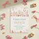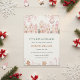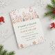 This charming winter village baby shower invitation features pastel houses, sparkling ornaments, gold confetti, and soft holiday greenery. The hand-painted pink palette creates a warm and magical scene perfect for winter celebrations. A lovely choice for moms-to-be who love elegant seasonal designs with a festive touch.