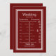 Cartão de itinerário burgundy e branco. A coleção elegante será perfeita para uma celebração de jardim interno ou externo para um casamento, chá de noiva, chá de bebê ou uma celebração country. Toda a coleção é personalizável. Aproveite sua celebração, aplausos!