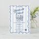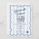 Um design colorido desenhado à mão com tema de cartas de baralho e dados de cassino. Um design lindo perfeito para festas de despedida de solteira de fim de semana. Este convite de despedida de solteira inclui um itinerário de fim de semana no verso. Um convite de despedida de solteira retrô moderno vintage com listras azuis e brancas.