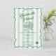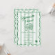 Um design colorido desenhado à mão com tema de cartas de baralho e dados de cassino. Um design lindo perfeito para festas de despedida de solteira de fim de semana. Este convite de festa de despedida de solteira inclui um itinerário de fim de semana no verso. Um convite de despedida de solteira retrô moderno vintage com listras verdes e brancas.