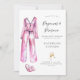 Celebre a noiva a ser com uma festa de solteira de festas do pijama e nosso convite itinerário elegante e elegante com ilustrações aquáticas de PJs, chinelos e flautas de champanhe cor-de-rosa, intitulados "Pijamas & Prosecco." Simples e moderno, é a maneira perfeita de lhe dar uma celebração para se lembrar enquanto ela passa da senhorita para a Sra.