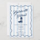Um desenho colorido desenhado à mão de botas de cowgirl com tema de rodeio. Um belo design perfeito para festas de despedida de solteira de fim de semana. Este convite de despedida de solteira inclui um itinerário de fim de semana no verso. Um convite de despedida de solteira retrô moderno vintage com listras azuis e brancas.