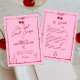 Convide o esquadrão da noiva para um fim de semana cheio de diversão com este convite itinerário da solteira de Uma Última Fuga Doce! Apresentando um fundo rosa-chic e detalhes desenhados pela mão vermelha-cereja, este design de na moda dá o tom perfeito para uma celebração doce e inesquecível. Totalmente personalizável, você pode personalizar o itinerário, as datas e os detalhes para corresponder aos seus planos. Quer seja uma fuga de Charleston ou uma fabulosa cesta de destino, este convite garante que todos estejam prontos para um fim de semana de diversão, risos e memórias duradouras.