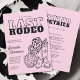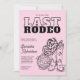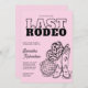 Convite de Itinerário de Fim de Semana para Despedida de Solteira Disco Cowgirl apresenta texto em negrito delineado em preto, uma bola de discoteca, botas western e um chapéu de cowgirl com estampa de vaca, tudo sobre um fundo rosa claro. Perfeito para celebrar a última cavalgada da noiva com um fim de semana country chic em Nashville ou viagem de garotas. A parte de trás inclui um cronograma completo do fim de semana para manter a tribo da noiva em dia. Personalize com os detalhes da sua festa e prepare-se para partir!