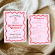Abraça a vibração retrorreflectora com o nosso Convite Itinerário de Fim de Semana da Onda Rosa. Este design chic e brincalhão dá o tom perfeito para um fim de semana de celebração. As ondas cor-de-rosa adicionam um toque de capricho, criando um itinerário na moda para a fuga especial da noiva. Totalmente personalizável para capturar a essência do seu evento. Peça agora e prepare-se para um fim de semana de despedida cheio de diversão, risos e memórias inesquecíveis!