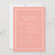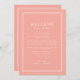 Este itinerário de fim de semana de casamento de pêssego suave do Avery Suite apresenta o moderno tipo sans serif branco, um delicado quadro de linha dupla e um layout de areia. O olhar moderno e minimalista é caloroso e romântico para casamentos contemporâneos. A frente da nota de boas-vindas apresenta uma carta de boas-vindas ao casamento e a parte de trás apresenta a linha do itinerário do casamento. Estas notas são perfeitas para casamentos de destino e bolsas de boas-vindas de hóspedes.