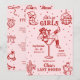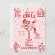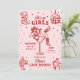 Este convite e itinerário de fim de semana de despedida de solteira rosa e vermelho apresenta um ousado tema retro ocidental "último rodeio" com ilustrações divertidas em estilo doodle, perfeito para celebrar ao estilo cowgirl em qualquer lugar. A frente mostra uma cowgirl confiante reclinada em um copo de martini, cercada por doodles caprichosos de botas de cowboy, chapéus, bolas de discoteca, cactos e estrelas, misturando charme ocidental rústico com vibrações de festa animada. A parte traseira exibe um itinerário completo de fim de semana emoldurado por ícones de doodle coordenados, como laços, botas, coquetéis e ferraduras, para um visual divertido e coeso. Com sua paleta de cores vibrantes, detalhes desenhados à mão e design correspondente de frente e verso, este conv