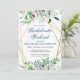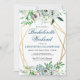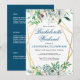 Flores em aquarela boho em azul suave, rosa e branco dentro de uma moldura geométrica dupla dourada apresentam floreios botânicos e de frutas. Personalize este convite de itinerário de despedida de solteira floral elegante com suas próprias cores e fontes ou mantenha esta tipografia popular como está para sua conveniência. Misture e combine com outros itens desta linda coleção de casamento.