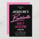 Convide os amigos para uma fabulosa Festa de solteira com este sofisticado convite itinerário de fim de semana preto e rosa-neon. Para coincidir com T-shirts e bolsas, visite a Coleção de Bachelorette do meu compro.