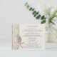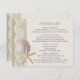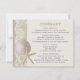 Dólar de areia e estrela-do-mar, Itinerário de tema de praia ou cartão de informações com um design de renda ivory vintage e aniagem. Texto roxo suave ou mude para combinar com as cores do seu casamento.