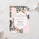 O convite para o fim de semana da praia de festa de solteira tropical mostra a monstera da aquarela e as folhas de palma em fundo rosa. Detalhes do convite moldura dentro dourada. Ordem semanal dos acontecimentos nas costas com maiô, chapéu de palha e bebidas tropicais.