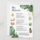 Os convites de fim de semana de praia para Festa de solteira apresentam itens de praia tropicais como biquíni, chapéu de palha e bolsa, óculos de sol e bebidas tropicais divertidas. Itinerário dos eventos.