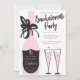 Faça a festa começar com este convite para festas de solteira divertida e festivo! Isso inclui um design traseiro onde você pode listar o itinerário do cheio para as atividades de diversão planejadas para este fim de semana de festa de solteira! O design apresenta uma garrafa de champanhe retrô e um champanhe cor-de-rosa! Edite facilmente com suas informações! Veja a Bachelorette Rosa inteira para ver mais itens correspondentes!