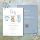 This cute baby shower invitation features a pretty blue boy baby clothesline and can be personalized with your details set in stylish typography. The reverse features your event details and registry QR code. Designed by Thisisnotme©