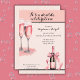 Make your joint birthday party unforgettable with this stylish and festive invitation design! With a sophisticated two-tone cream black layout, the left side features a rich pink shade adorned with golden glitters, watercolor champagne glasses, and a bottle that sets the scene for a bubbly celebration. The scripted “It’s a double celebration” adds a touch of glamour and excitement across the card. On the right, black background offers room for all your personalized party details in a classy script and serif font pairing. The back design continues the elegant theme with a lighter pink base and shimmering glitter details.