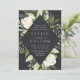 Nosso convite para o casamento de Ivory Bloom rodeia os detalhes do dia do seu casamento com uma estrutura geométrica moderna em forma de diamante de verde-aquarela pintada, folhas de eucalipto, folhagem botânica, rosa branca e flores de pénia.