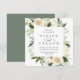 Nosso convite para o casamento de Ivory Bloom rodeia os detalhes do seu dia de casamento com um quadro quadrado de cor d'água verde pintada, folhas de eucalipto, folhagem botânica, rosa branca e flores de peônia.