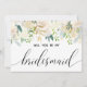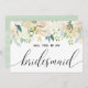 Projetado para coordenar com a nossa coleção de casamento de Ivory, esta nova botânica verde e branca VOCÊ SERÁ MEU cartão BRIDESMAID apresenta um spray de verde-aquarela e flores brancas e cor-de-rosa tocando uma letra de caligrafia feminina para pedir a sua amiga para fazer parte do seu casamento. Este item faz parte de uma coleção, visite nossa loja. Para obter ajuda ou solicitação personalizada, entre em contato conosco através da loja ou escreva em citronelladesign@gmail.com