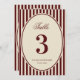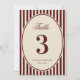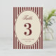 Convites Ivory Burgundy Stripes Retro Wedding Table Number
