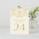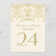 Números de tabela inspirados na vintage marfim elegante apresentam um monograma de casamento e um design decorativo de ornamentado com uma aparência de um shimmer de ouro de champanhe metálico. Design de dois lados. Personalize e adicione cada placa de número de tabela ao seu carrinho de compro individualmente.