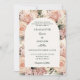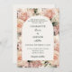 A soft ivory colored arch shaped background decorated with dusty rose and mauve colored florals. Personalize and add your names and the details. Green colored text.