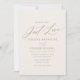Convide amigos e família a compartilhar a alegria do seu casamento com este convite moderno, apresentando uma escrita elegante e tipografia de ouro num fundo de marfim.