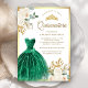 Convites Ivory Floral Emerald Green Gown Dourada Quinceaner