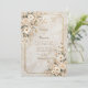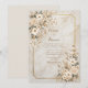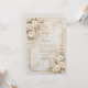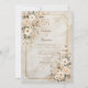 Set a tone of timeless luxury with this sophisticated invitation that perfectly pairs organic beauty with architectural structure. The background features a warm, beige marble texture with subtle earthy veining, creating a rich and polished canvas for your event details. The design is framed by a thin, double-line geometric border in an antique gilded finish, featuring distinctive inverted corners that give it a vintage ticket-style silhouette. Lush clusters of creamy ivory blooms—resembling wild anemones or camellias—adorn the top left and bottom right, accented by sage foliage and delicate bronze stems. This neutral and elegant aesthetic is a flawless choice for a formal black-tie wedding, a sophisticated bridal shower brunch, or a classic engagement party. You might also select this refined design for a milestone anniversary celebration, a corporate gala dinner, or a high-end retirement party for a professional.