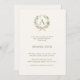 A soft ivory colored background, decorated with a dusty green, greenery bow bow. Personalize and add her monogram letter, initial, name and party details.