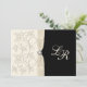Este monograma de marfim e convite floral preto tem uma fita IMPRIMIDA EM Fita com um ninho de prata e um broche de pérolas nele. Todo o texto é personalizável e pode ser alterado ou removido conforme adequado. Se você precisar de outros itens neste estilo design, envie um email para niteowlstudio@gmail.com para solicitá-los. Outras combinações de cores estão disponíveis mediante solicitação.