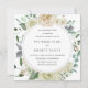 Um quadro floral elegante rodeia a informação do casamento. Este modelo de convite de casamento "faça você mesmo" apresenta grandes rosas de marfim e hífenes com pequenos pop de botões cor-de-rosa e flores de hydrangea. A parte de trás do convite para o casamento é um verde macio. As folhas abertas e arejadas e as vinhas criam um design botânico moderno. Faz parte da coleção Flaoral de Marfim. Contém muitos itens que podem ser personalizados para tornar seu papel de carta de casamento, cerimônia e recepção verdadeiramente únicos.